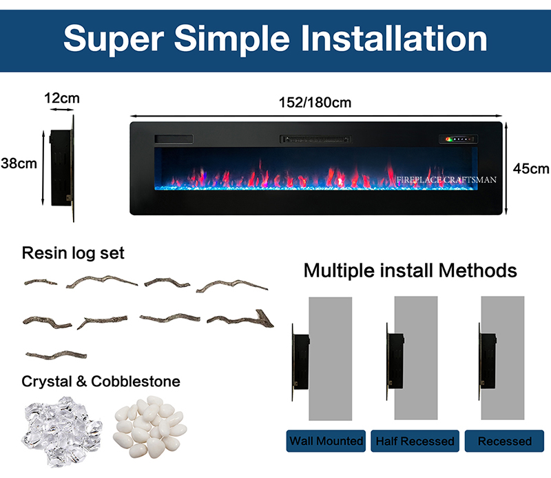 Į sieną montuojami elektriniai židiniai plačiai naudojami viešbučiuose, apartamentuose, biuruose ir komercinėse patalpose.
